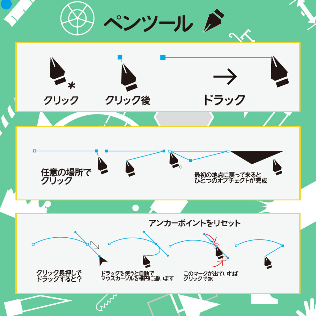 イラストレーターのペンツールの簡単な基礎操作を