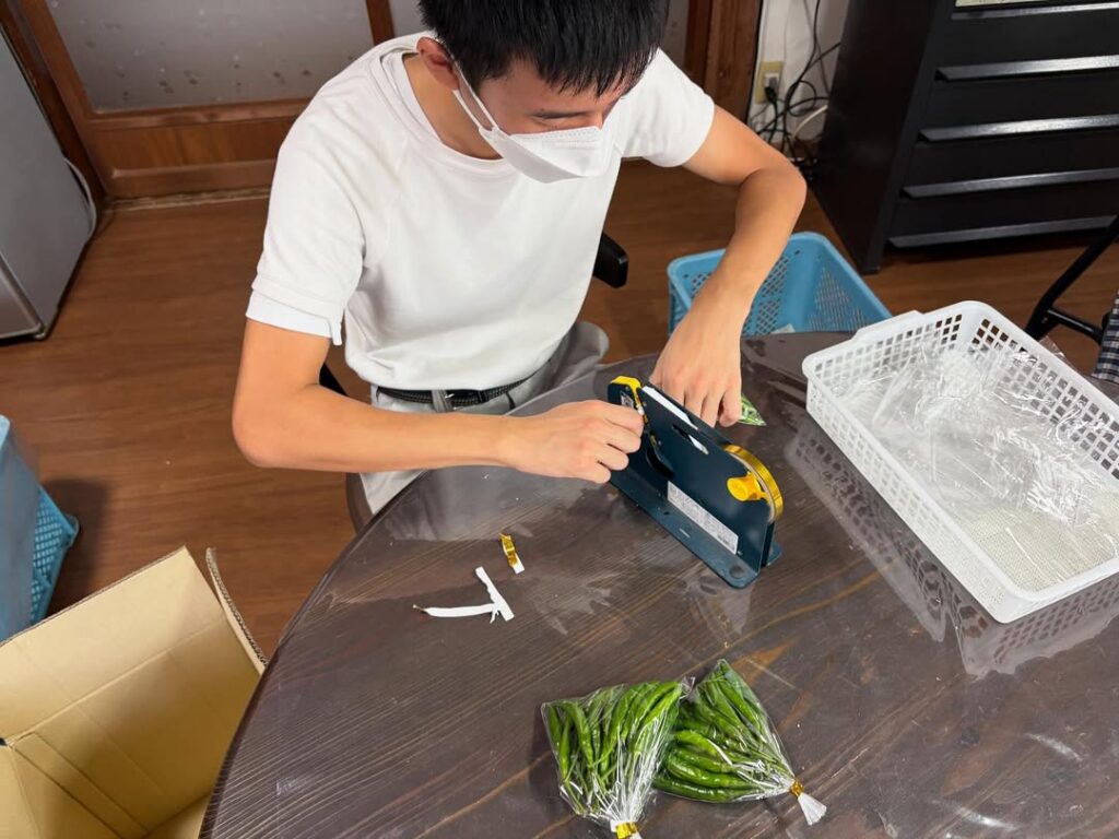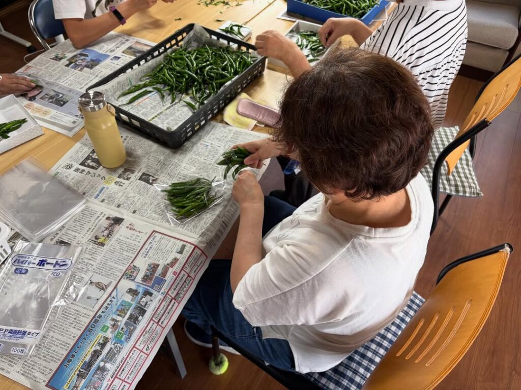 地元農家さんから作業を頂き、唐辛子の検品&袋詰めをやっています(^^)農家さんいつもありがとうございます♪